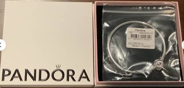 Silver PANDORA Moments Encircled Clasp Bangle Bracelet size 7.5” comes in Pandora box for gifting. $60 or best offer