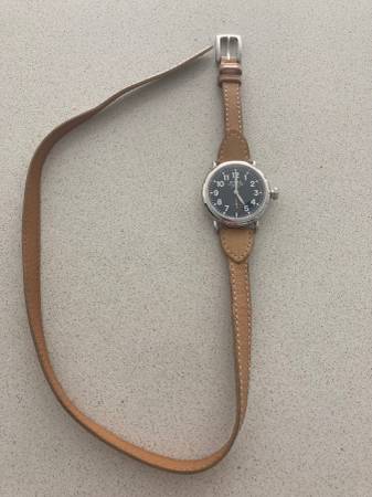 Never worn FULLY FUNCTIONAL WORKING women’s RARE SPECIAL EDITION Limited Run Color-this is a ‘one off’ Shinola Detroit special model with a beautiful black face, pearl numerals/markers, orange second hand, Argonite 1069 high-accuracy quartz movement, sapphire crystal, polished stainless case, and natural Horween leather band color.