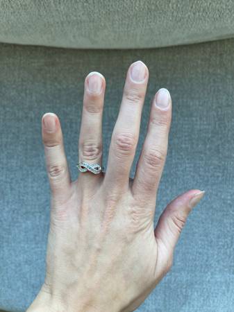 Selling a new silver infinity ring - size 7. It has never been worn. Pick-up near Fulton River. Can also drop off anywhere in the Loop free of charge.