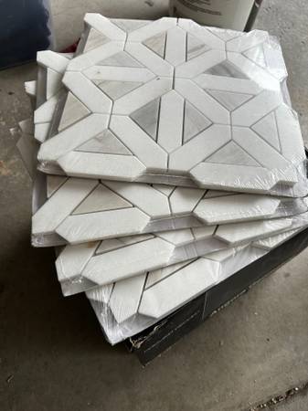 I have 2 boxes of Angora Geometric 12" x 12" Polished Marble Mosaic Floor and Wall Tile, plus 4 pieces. Each box covers 10 S/F for total coverage of 24 S/F