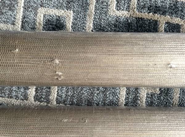 Ralph Lauren (brand new, sealed and in original shipping box - never exposed to light) seagrass knotted wall paper. Color is tan with a silver/hint of blueish gray iridescent sheen on it....