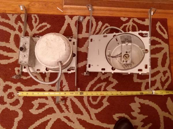 Preowned never used Recessed Lighting Housing for new construction 2 pieces. Cash Price $15.00 total for two pieces. Please bring exact change. Thank you.