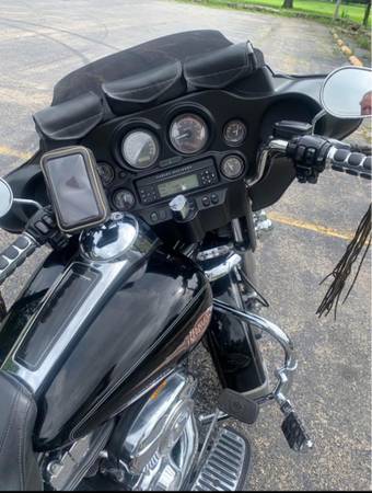 FLHTC - Classic .. Excellent condition, completely stock motor, Reinhardt pipes, soft grips, high quality fringe on bars and foot rests, Twin 96 engine with electronic sequential port, fuel injection , Harmon Karson advanced audio, 6 speed transmission, Brembo 4 piston front and rear calipers with dual front rotors adjustable rear shocks, cruise control. New HD battery, new Michelin rear tire. This bike is adult driven, runs and looks great!