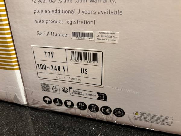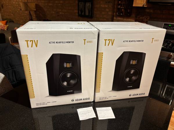Here's a pair of ADAM Audio T7V 7-inch powered studio monitors with matching T10S subwoofer. These are brand new, sealed in original boxes. I received these as a gift but I don't have a need for...