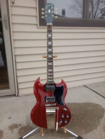 Epiphone SG Standard '61 Maestro Vibrola Guitar in Vintage Cherry for sale. Mint condition. Inspired by Gibson Collection. Mahogany Body. ProBucker Humbuckers with CTS Electronics. Comes with like...