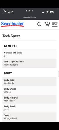 Bought April 2023 from Sweetwater. Limited use. Great condition. Specs screenshots and photos from Sweetwater are of this exact guitar. See photos for all specs. Includes soft carrying case. Does...