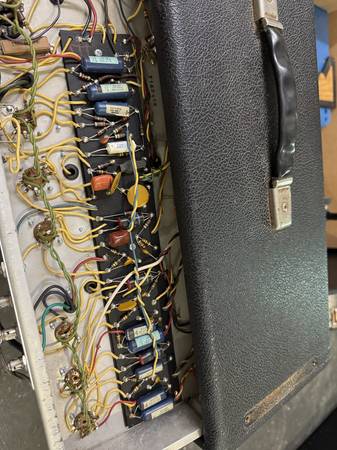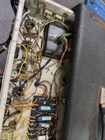 Modifications: The handle is changed as well as tubes and two changed pots. Cable has been changed to a grounded three prong. There is a small hole that was added to the back baffle. It was neatly plugged and is almost unnoticeable. All else including transformers/choke is original