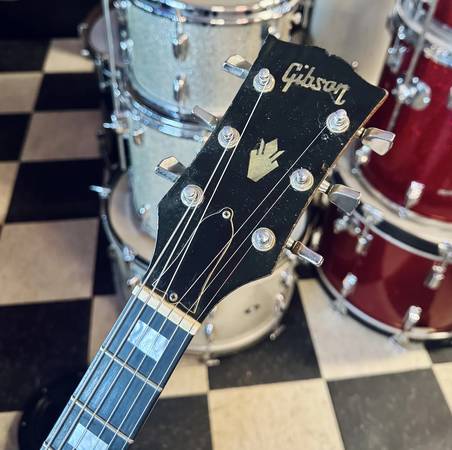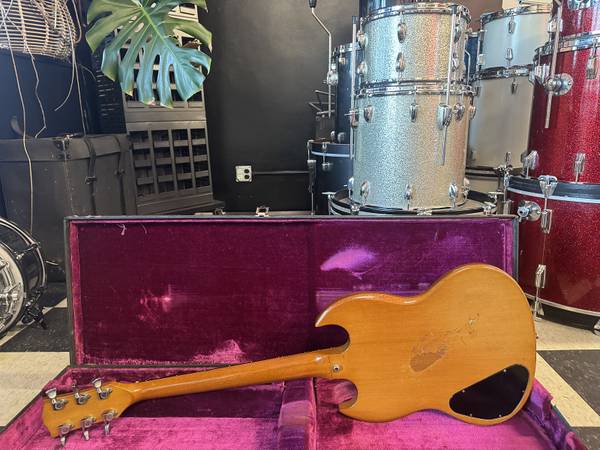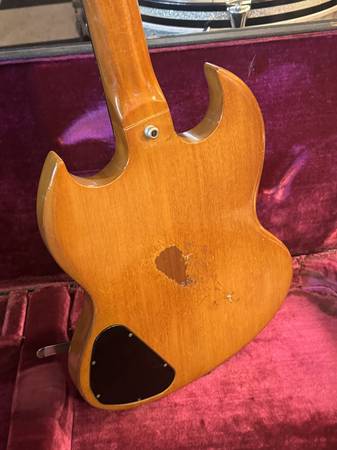 Case: Original Gibson hard case is in rough shape. Lid comes off when opening all the way and one latch is missing
