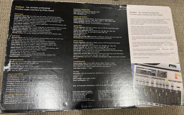Finally parting with the Prism Orpheus I have owned for 10+ years. I've made ALOT of records on this thing and it never disappoints, just the old Firewire protocol is a hassle with my new setup.