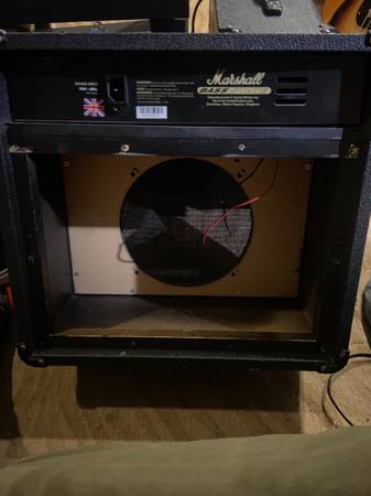 The second amp is a Marshall Bass State, which actually turned on, and I thought it was a loose jack, etc, (Shown without speaker, but speaker will be installed as well as back panel) After about 30 seconds the amp just went off, no noise, no nothing, just off. I waited about 30 minutes and tried to turn it on again and heard a “pop” and it turned off again. I plugged it back up this week and it stayed on (!!!), and plugged a cable in, but it was in and out. I couldn’t figure it out, but I know YOU can!