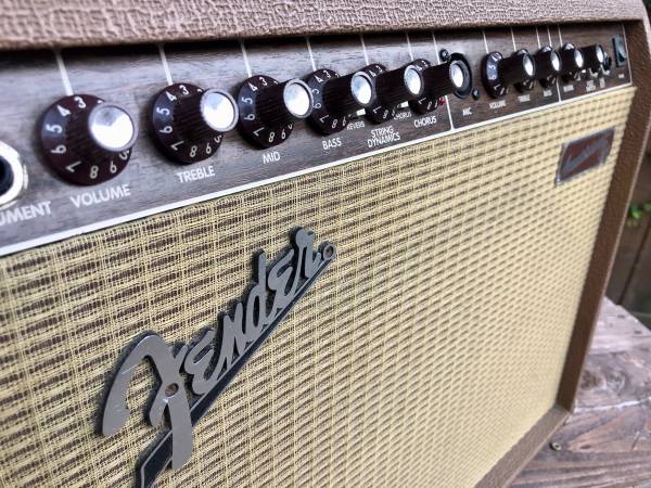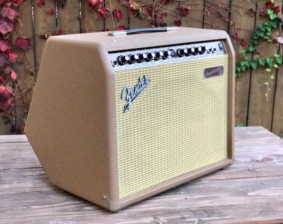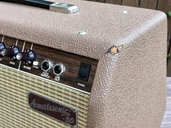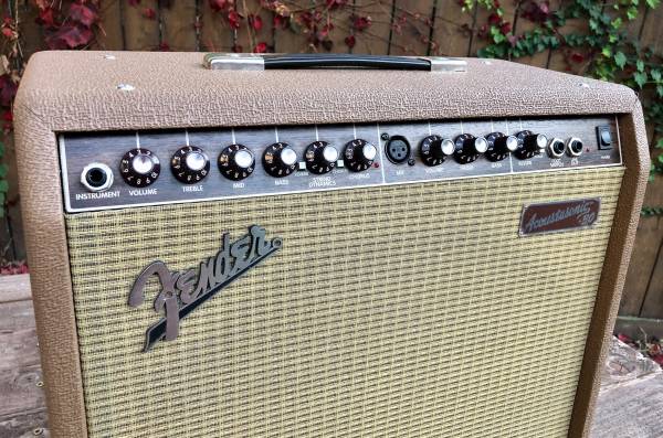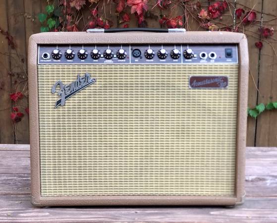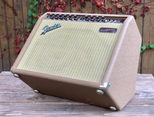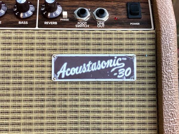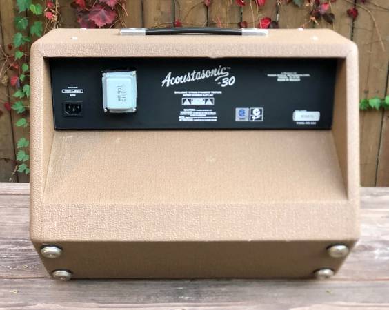 From legacy Fender data: "This new amp, an upgraded version of Fender's popular Acoustasonic 30, features digital effects including Reverb, Delay, Chorus, Vibratone, and more, all optimized especially for acoustic performers. Each of the amp's two channels provides FX Select and FX Level control and onboard feedback reduction gives you the finishing touch to your professional overall sound. The Acoustasonic 30 DSP is powered by a 30-watt amp driving an 8" speaker and a tweeter. Other features include a built-in tilt-back angle, phantom-powered XLR mic input, and more.