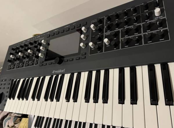 Selling my Waldorf Iridium Keyboard, a 16-voice digital polyphonic synthesizer in mint condition. Features a premium 49-key Fatar keybed with polyphonic aftertouch, five powerful synthesis engines (wavetable, VA, granular, resonator, FM), extensive modulation matrix, high-res touchscreen, and full CV/MIDI integration.