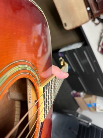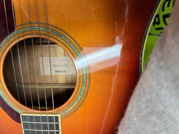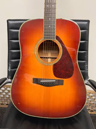 Yamaha guitar in great playing condition but with blemishes on the top and hazing of the finish. There is a spot in the top where the case lid hit the spruce top.