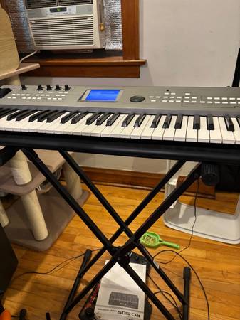 Keyboard is in decent, working condition. Gig bag and stand are both in excellent condition. The stand fits inside of the gig bag for easy transport.