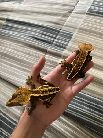Got some pinstripe Harley Crested geckos with some good head structure. Both are around 2-3 years old. Male is pictured first and female is the orange. Let me know if you have any questions! Open to...