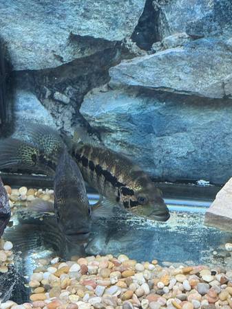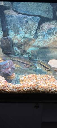 Pair of Dovii fish aka Wolf cichlid. Male 9in female 7in. Female has a split tail as shown on pics. Asking $150 obo.