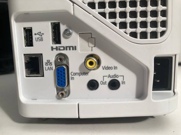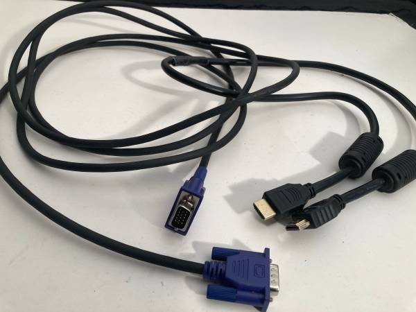 See the pictures for all the possible connections, including HDMI, USB, multi-pin monitor cable (included), video, LAN, and audio in and out.