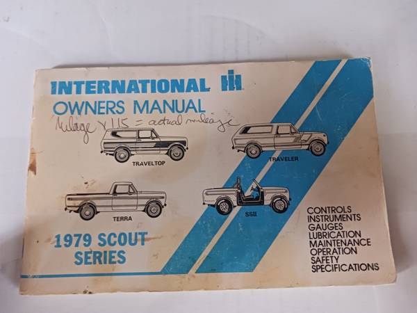 Used Owners Manual for International Harvester Scout Series from 1979.