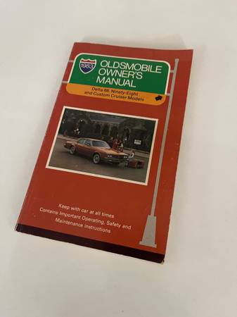 This is an original 1983 owners manual for the Oldsmobile Delta 88, 98, and Custom Cruiser models. Good condition. Price is $5, cash and local pick-up.