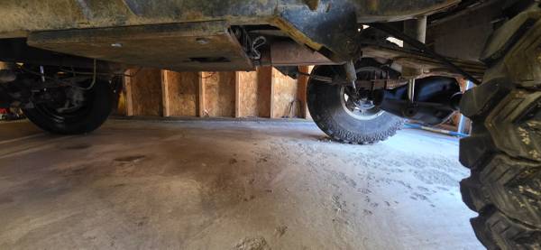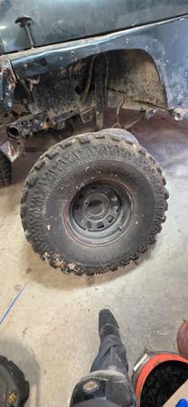 spring over springs and shackles. Custom rear bumper and tire carrier. Custom trans skid plate. Shock extenders. Front axle is a Dana 30 with 4.56 and a locker- missing axle shafts. Rear axle Dana 35 missing ring and pinion. Comes with 2 centerline aluminum wheels and 2 warn steel wheels(different bolt pattern) and 3 35x12.5 Super Swamper SSR's and 2 Goodyear MTR tires. Frame is in good condition.I have the title. Text with questions