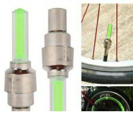 4 Firefly Flashing LED Tire Light Valve Stem Cap Car Bicycles Bikes Motorcycles New with batteries 10$ for 4 caps Green,Yellow,or Red to choose from. Sorry sold out of blue color! Picked up near...