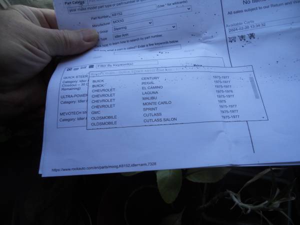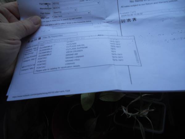 idlet arm moog ask on aps or check,many 1975-1977 gm mid size aps cutlass check napa list cross over