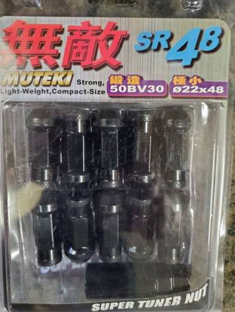 Up for sale are Muteki SR48 Tuner Lug nuts kits with key.20 pcs Available in 12x1.5 or 12x1.25 thread pitch. Available colors: Black,Blue,Red,Yellow,Burnt Titanium (Neo chrome), Chrome/Silver Price...