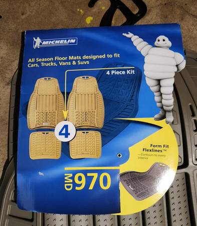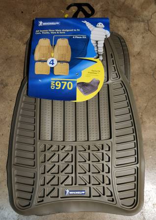 New Michelin 4 Piece Floor Matt Set. Brown in color set . For Cars, Trucks Suvs and Vans Model #MD 970 Local pick up Only! Contact for more Information. I will not respond to is it still available...