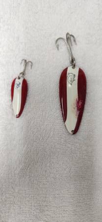 Pair of dare Devil Red and White Original Spoons. Local pick up ONLY! Contact for more information. I will not respond to is it still avaialble request!