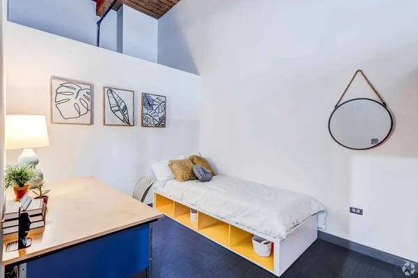 Gym, laundry room, study rooms, vending machines in building. The location is a 5min walk to target. Across the street from UIC-Halsted Blue Line.