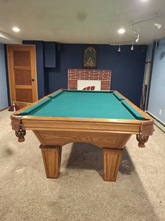 Elevate your game room with this beautiful 8ft Brunswick Contender pool table, a top-tier brand known for its craftsmanship and durability. This gently used table features beautiful square legs and a rich oak finish that gives it a warm, upscale look. With its 3-piece slate playing surface, it delivers excellent performance for home entertainment, family fun, or serious billiards enthusiasts in Chicago, IL. Enjoy big savings compared to buying new—without sacrificing quality or style!