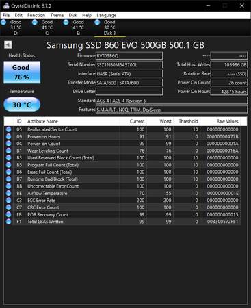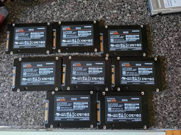 I have 4 500gb Samsung 860 qvo ssds. Heavy use 75% health Crystaldisk in the photos asking $20/each 4 sold 4 left