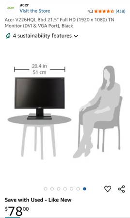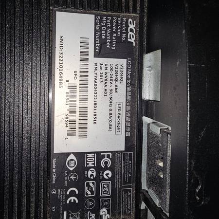Acer V226HQL Bbd 21.5" Full HD (1920 x 1080) TN Monitor (DVI & VGA Port), Black In Working Condition Monitor Only