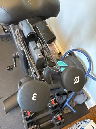 Selling my 2020 Peloton Bike (2nd Gen) as I’m upgrading. Used around 182 rides, still works great. Comes with a mat, weights, and shoes (size 37). Delivery available