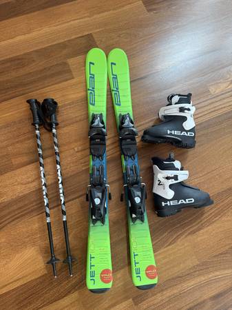 Elan Jett Jr Ski + EL 4.5 GW Bindings, Head Ski Boots MD 18.5, Atomic Ski Poles Bundle
