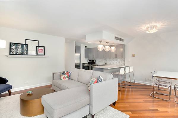 Gorgeous & Rarely available Southeast corner unit in the heart of the Gold Coast. Totally Rehabbed in 2015, this unit offers an open floorplan with beautiful cherry diagonal hardwood floors throughout. Open modern kitchen with gray cabinets, marble counters, and backsplash, new oven, and dishwasher. New light fixtures and high-end interior doors throughout. Largest 1 bed in the building (only 2 other units like it). Full Amenity building with excellent 24-hour door staff & on-site management. Remodeled outdoor pool with high-end lounge chairs, couches & furniture and BBQ grills. Walk to everything Gold Coast has to offer- steps from the lake, Division Street, Red Line, CTA, Old Town, Mag Mile & more.