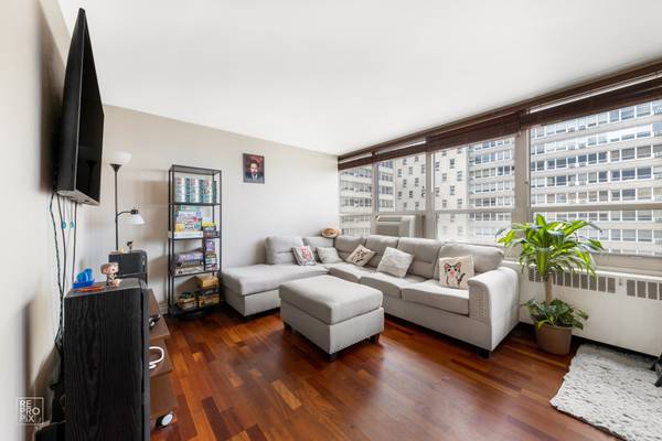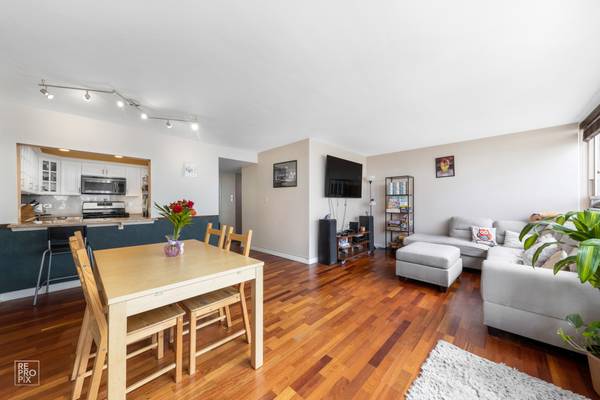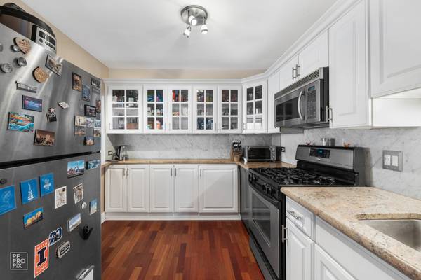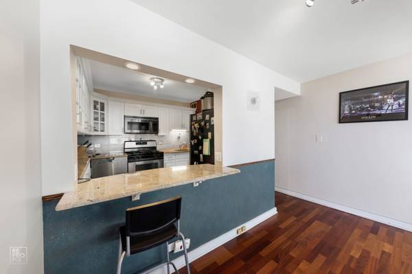 Renovated corner unit with lovely Eastern views of Lake Michigan! Featuring cherry hardwood floors throughout, a chef's kitchen with white cabinets, granite countertops, marble backsplash, breakfast bar, stainless steel appliances, custom wood blinds, and a renovated bathroom. Located in Chicago's Lakeview East community, the property is surrounded by attractively landscaped gardens. Residents enjoy lakefront living, parks, and recreation along iconic Lake Shore Drive. Features include on-site management and maintenance, 24-hour door service, fitness room, storage rooms, newly renovated sundeck, receiving room, convenience store, and a heated indoor parking space.