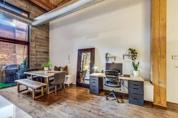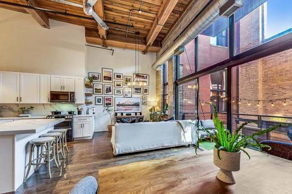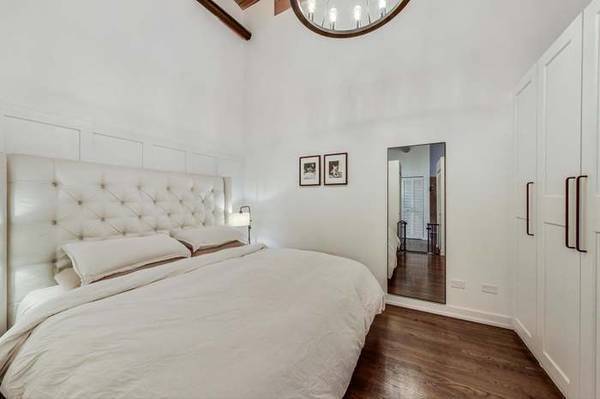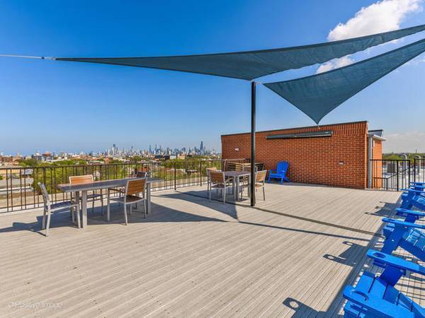 Gorgeous recently updated Silk Factory Lofts 1 bedroom 1 bathroom condo located in hip Logan Square on a quiet tree lined residential street. This stunning home features soaring 14 foot timber ceilings, exposed brick, beautiful recently refinished hardwood floors throughout, modern light fixtures, and full height industrial windows. The jaw dropping kitchen, completely redone, features white quartz counters and backsplash, GE Cafe appliances including a double oven, fridge with water dispenser, microwave, and dishwasher, as well as an island which seats 3 people, an oversized single bowl sink, soft close drawers/cabinets, and tons of counter and storage space plus a unique wrap around coffee bar, which has additional storage space. The kitchen opens to a spacious living room which can easily fit a large sectional. This large open concept living room/dining room opens to an oversized private balcony off the living room. The charming bedroom can fit a king sized bed and features a wall of closets. The bathroom, renovated, has double sinks, a walk in shower with rain shower head and a towel warmer. Formal foyer with coat closet. Quiet unit as this condo doesn't share walls with any neighbors on either side of it! Newer in-unit washer dryer. Fabulous and pet-friendly building, locked bike room with free bike storage, heated garage space with an additional storage area in the garage, shared rooftop deck (watching the 4th of July fireworks from here is spectacular), elevator, and a workshop room for those diy projects. Mere blocks to the 606 Trail, two Blue Line "L" stops (Western, California), and in the heart of shopping, restaurants, and bars. Walk to all Logan square hot spots including the Sunday Farmer's Market, Table, Donkey and Stick, Lonesome Rose, Union, Lardon, Parson's Chicken & Fish, Bang Bang Pie and so many more famous Chicago restaurants. This unit is perfect-just relax, move in and enjoy loft life! Or with such high ceilings you can always add a lofted area to make a second bedroom or office area and add even more value to this fabulous condo.