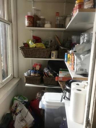 One large bedroom, one smaller one, plus enclosed back porch in 2 unit building
