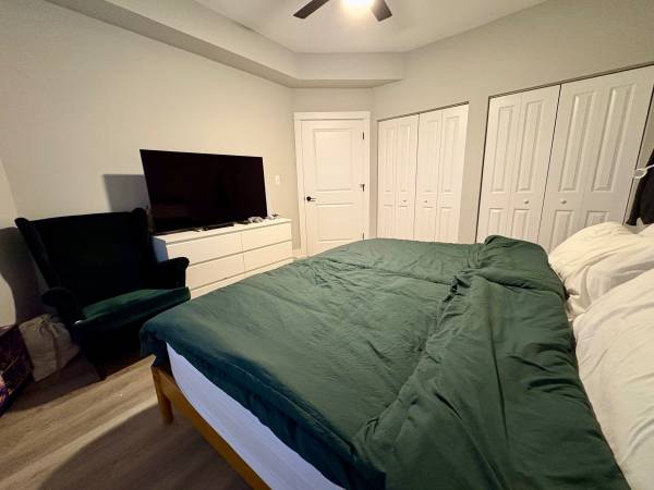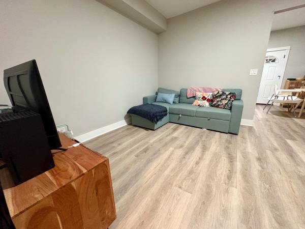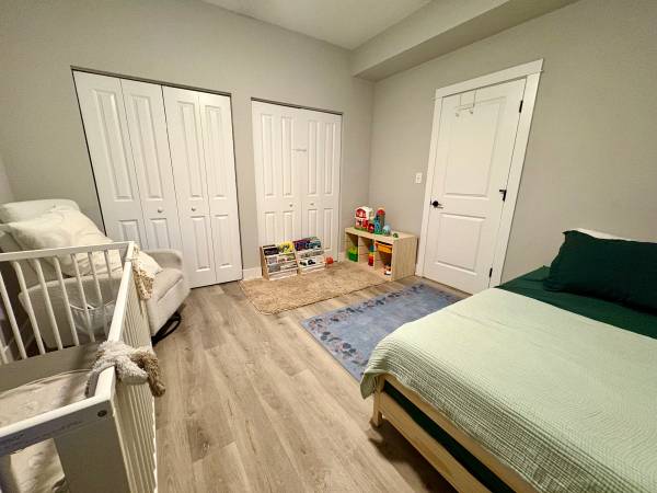 A spacious unit including 3 bedrooms (primary bedroom fits a king size bed), 1 bathroom, living area, and kitchen/dining room. Huge storage closets in the bedrooms!