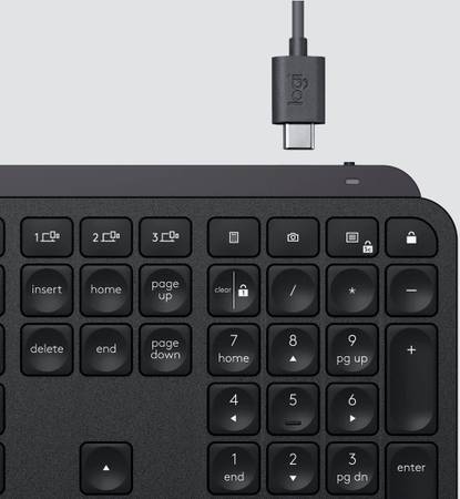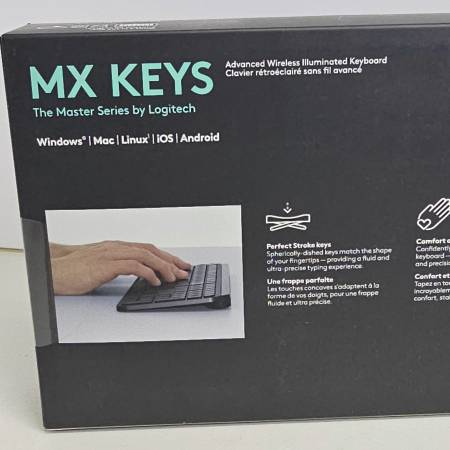 The MX Keys, an advanced wireless illuminated keyboard crafted for efficiency, stability, and precision. Perfect Stroke keys are shaped for your fingertips and increased key stability reduces noise while optimizing responsiveness. Tactile reference for hand positioning makes it easy to stay oriented and in your flow. The backlit keys light up the moment your hands approach, and automatically adjust to suit changing lighting conditions. With MX Keys you can truly master what you make.