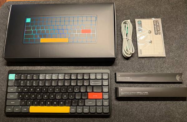 Nuphy Air75 V2 Portable 75%, Low-Profile Mechanical Keyboard, Basalt Black with Cowberry (45gf) switches, which are quieter and smooth-feeling.