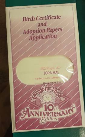Numbered limited edition in the original box with Birth Certificate and Adoption Papers Application. The box is a bit tattered from storage and the doll is excellent (papers are unopened). Pickup or priority shipping and handling will be $17 with payment of cash, check, Zelle or the CashApp