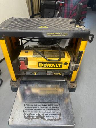 The DEWALT CORDED 3 BLADE 12 1/2" THICKNESS PLANER # DW733 is a high-quality power tool designed for precision woodworking tasks. With a sturdy construction and high-speed steel blades, this thickness planer is capable of achieving smooth and accurate results. Operated by a corded electric source with 110V voltage, it offers reliable performance for home and workshop projects. The DW733 model is equipped with three blades, allowing for efficient and consistent planing of materials up to 12 1/2 inches wide, making it a versatile tool for woodworking enthusiasts and professionals alike.