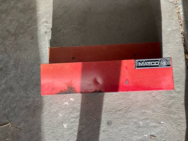A Matco tool box side bin/tool holder. Fits spray cans nicely. Has holes for mounting it with bolt and also a lip for hanging it off the ledge of your tool box.