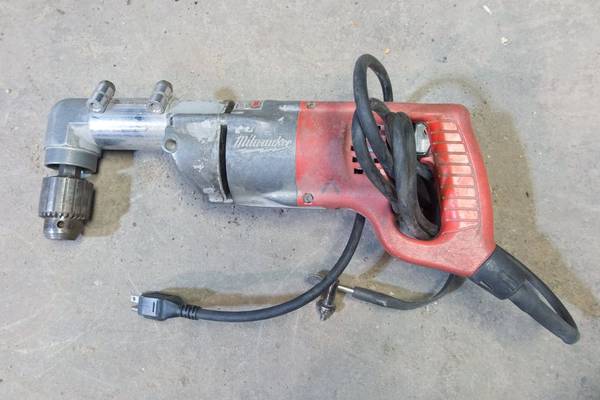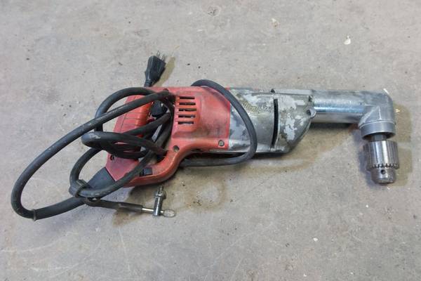 USED MILWAUKEE 1/2 INCH RIGHT ANGLE DRILL HAS BEEN JUST SERVICED WHICH INCLUDED NEW CORD AND BRUSHES 80$ TAKES IT retails at 350$ at home depot...