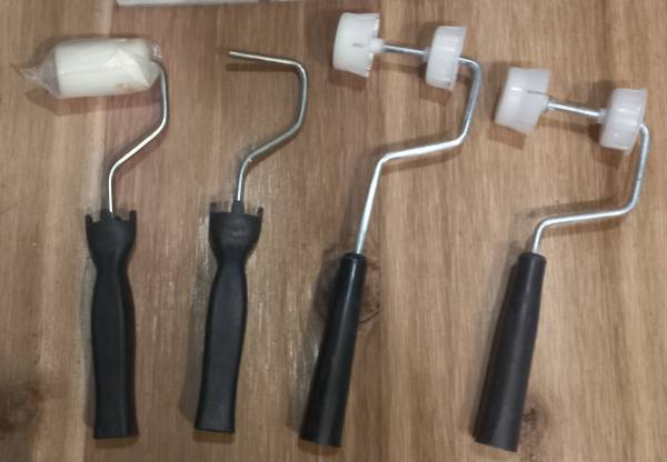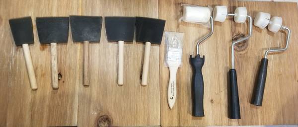 (10)-Paint Items: 4 Roller Frames (1) w/Hi-density foam, (2) Standard Diameter Size 5 Foam Brushes: (3) in Excellent condition (2) in Acceptable condition 1 Chip brush All items as shown.