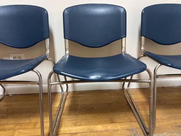 I'm selling a set of three navy blue stacking chairs! These are great for extra seating in a home, office, or waiting room. They are in good condition and ready for a new home