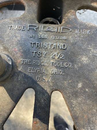 Ridgid brand pipe threading vise with tripod stand ,solid unit,made in USA. If this is posted it is available. I don’t text or email. Call (847) four three one-9196 Pipe, threading, vise, stand,...