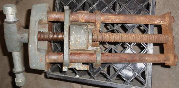Old Wilton Wood Working Vice It is about 5 and 3/4 inches tall...17 inches long and 7 inches wide as it sits It does show age wear/rust/stains It is $19.00 To see all the items I have 'For Sale' on...